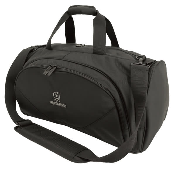 Large centre compartment with straight opening, One front large zipper pocket with organiser, Large zippered pocket at both sides, One zippered mesh holder inside the right end pocket, Removable and adjustable shoulder strap and carry handle, Extra large and thick shoulder pad and carry handle and Studded and padded base for durability and support